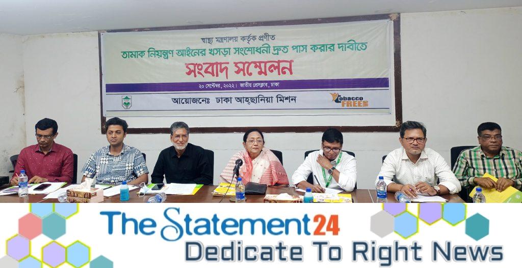 Shirin Akhter also said in the speech of the chief guest in this press conference entitled “Demand for quick passing of the draft amendments to the Tobacco Control Act made by the Ministry of Health” organized by the Dhaka Ahsania Mission, that various institutions can take the initiative to make their institution’s tobacco-free. If iconic institutions like National Parliament and National Press Club can be made completely smoke-free, they will serve as an example. I believe that taking into account the health risks to tobacco workers, initiatives should be taken in areas where it is applicable to reduce tobacco production.
