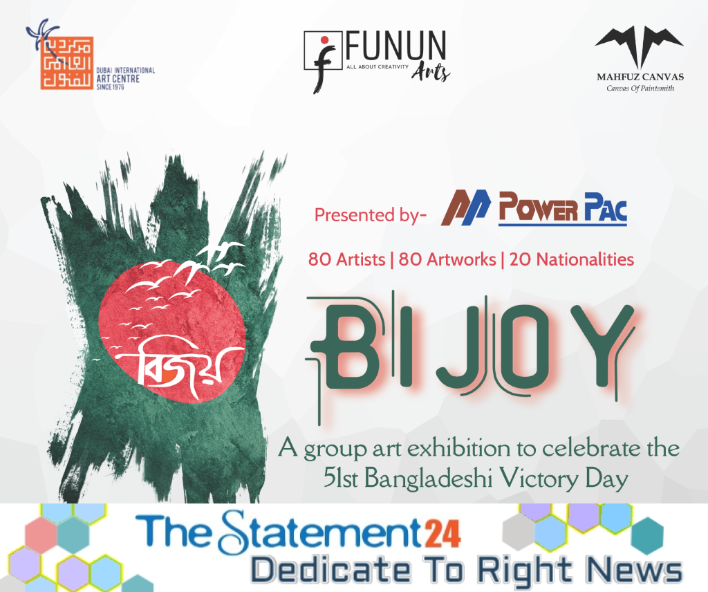 PowerPac presents “BIJOY,” the first group art exhibition of more than 50 Bangladeshi and 20 other nationalities artists to celebrate the 51st Victory Day of Bangladesh. This 10-day-long art exhibition event is organized jointly by Funun Arts, UAE and Mahfuz Canvas, Bangladesh at Dubai International Art Center (DIAC), Dubai, UAE from December 12 to 21, 2022.