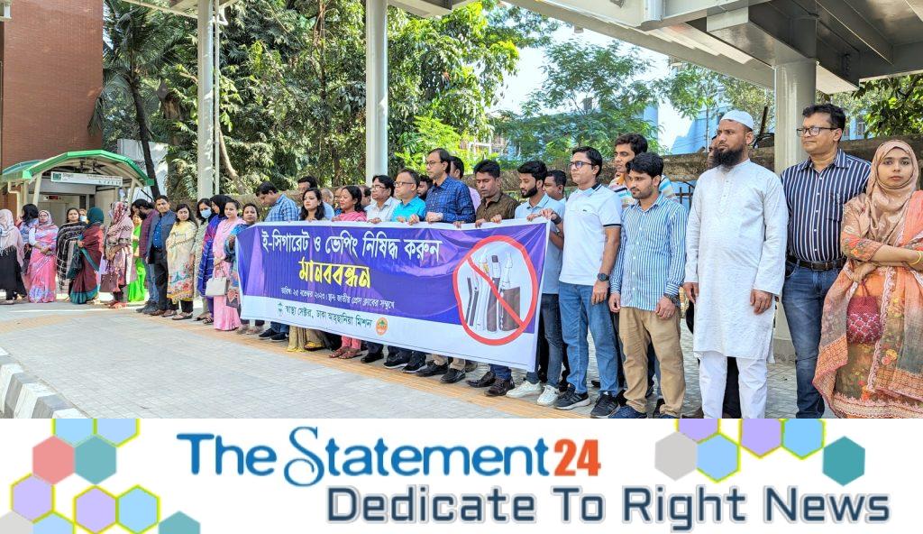 This demand was announced in a human chain titled ‘Ban e-cigarettes and vaping’ organized by the health sector of Dhaka Ahsania Mission in front of the National Press Club, Today ( 25 November 2023).