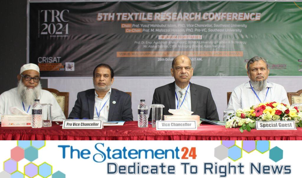 The Textile Engineering department of Southeast University (SEU) hosted The 5th Textile Research Conference (TRC) at the Multipurpose Hall of the University on 26th October 2024. TRC is an event from the research platform “Centre for Research and Innovation in Science and Technology (CRISAT)”. The conference initiated with the welcome remarks by Professor Engr. Mashud Ahmed, chairman of the Textile Department of SEU.