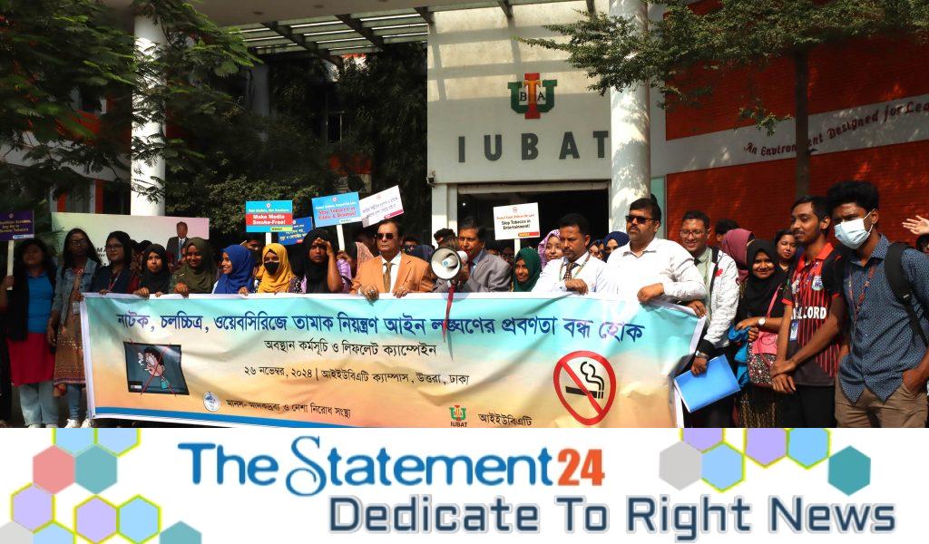 Anti-tobacco campaign at IUBAT University to ban tobacco scenes in dramas, films and web series