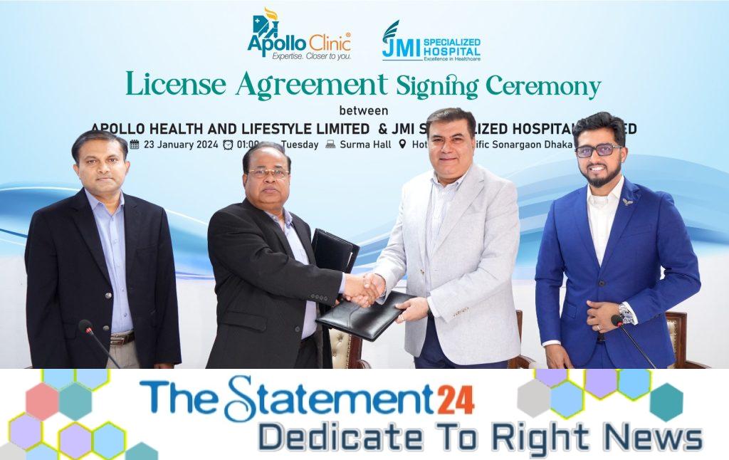 India’s renowned hospital chain brand Apollo joins hands with the country’s pioneer healthcare brand JMI for ensuring access to world class treatment for patients in Bangladesh. JMI Group will establish and operate Apollo Clinic in Dhaka. A license agreement has been signed in this regard between JMI Specialized Hospital Limited and Apollo Health and Lifestyle Limited.