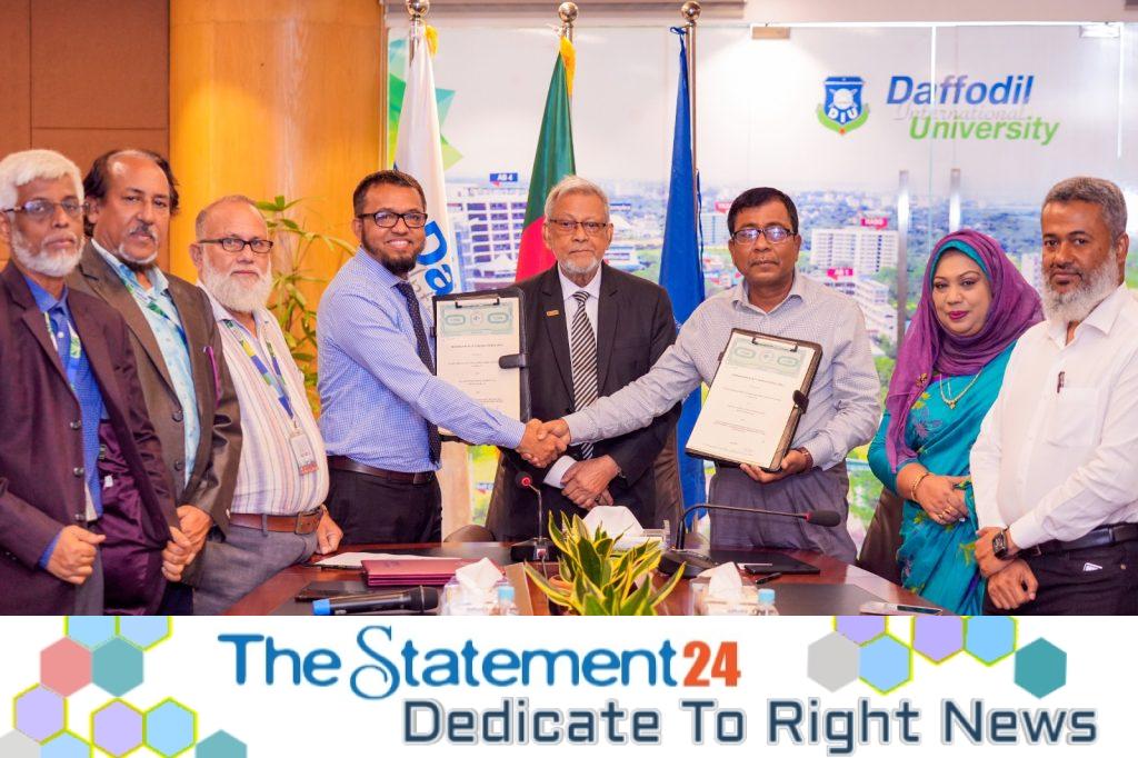 Daffodil International University (DIU) and Bangladesh Agricultural Research Institute (BARI) have signed a ground breaking Memorandum of Understanding (MoU) aiming to advance agricultural research, technology transfer, and innovation on July 02, 2024 at Conference Room of the university. Dr. Mohammed Nadir Bin Ali, Registrar, Daffodil International University and Dr. Debasish Sarker, Director General of Bangladesh Agricultural Research Institute signed the MoU on behalf of their respective institution. Professor Dr. S M Mahabub Ul Haque Mazumder, Acting Vice Chancellor, Prof. Dr. Md. Bellal Hossain, Dean, Faculty of Health and Life Science, Professor Dr. M A Rahim, Head of the Department of Agricultural Science of Daffodil International University and Dr. Ferdousy Islam, Director ( Service & Supply), Dr. Ashraf Uddin Ahmed, Chief Scientific Officer ( Training & Communication wing) of Bangladesh Agricultural Research Institute (BARI) along with other high officials of both the institutions were present at the MoU Signing Ceremony..
