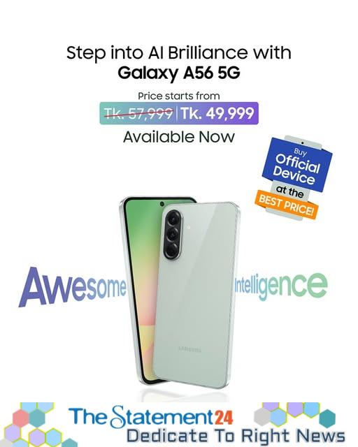 Regarding it, Syed Md. Badrul Arifeen, Head of Product, MarCom, Samsung Electronics, MX Division, Bangladesh Branch Division, said, “AI has now become central to our everyday lives, and we are proud to democratize it through our latest device A56 5G that comes with a number of AI features. The launch will redefine what our Bangladeshi customers expect from affordable smartphones.”