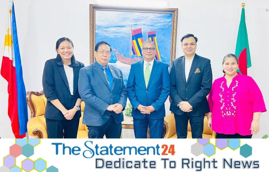 The newly elected President of Bangladesh Philippines Chamber of Commerce and Industry (BPCCI), Humayun Rashid along with Vice President Imran Ahmed has recently called on His Excellency Leo Tito L. Ausan, Jr, the Ambassador of the Republic of the Philippines to Bangladesh. The insightful meeting took place at the Embassy of the Republic of the Philippines in Bangladesh on Monday and lasted for approximately one hour.