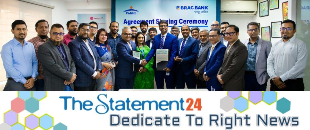 BRAC Bank has signed an agreement with PidiliteSpeciality Chemicals (BD) Pvt. Ltd. to provide financing solutions for the distributors of the adhesive manufacturing company.