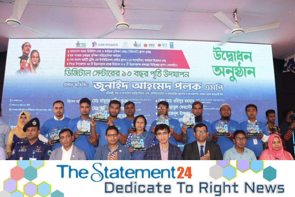 Aspire to Innovate-a2i recently celebrated its 13th anniversary, marking over a decade of providing technology services to marginalized communities through digital centres. The event was held in the Singra upazila in Natore and was attended by the state minister for Information and Communication Technology Division, Mr. Zunaid Ahmed Palak, MP as the chief guest. The event was also attended by the Project Director of a2i, Md Mamunur Rashid Bhuiyan; Natore Superintendent of Police Md. Tariqul Islam, PPM; and other special guests including Tariqul Islam, PPM; Sheikh Kamal IT Training and Incubation Center Establishment Project Deputy Project Director (Deputy Secretary) Md Mokhtar Ahmed, and Project Director of Bangladesh-India Digital Services and Employment Training Center Establishment Project, Md Amirul Islam.