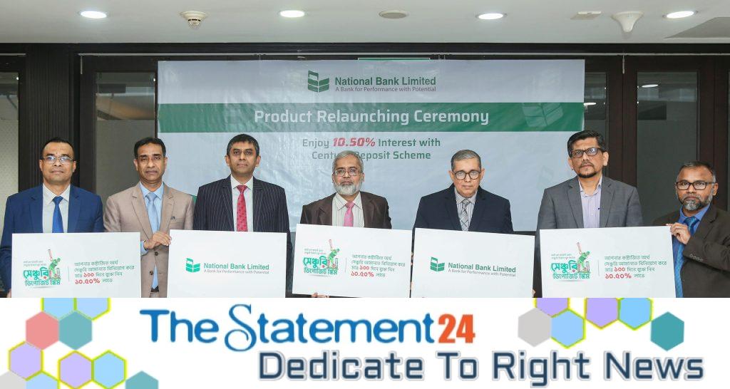 National Bank’s “Century Deposit Scheme” was relaunched on May 29, 2024, at the bank’s head office. The Managing Director & CEO, Md. Touhidul Alam Khan, attended the event as the chief guest. Deputy Managing Directors Syed Rois Uddin, Sheikh Aktar Uddin Ahmed and Md. Abdul Matin, along with senior officials of the bank, were also present.