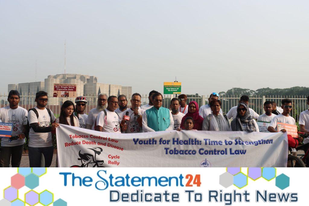 The call came during a cycle rally titled “Youth for Health: Time to Strengthen Tobacco Control Law”, organized by Madak Darbo O Nesha Nirodh Sangstha (MANAS) on Manik Mia Avenue, Dhaka. The event aimed to raise public awareness about the growing threat of tobacco addiction and its devastating impact on health, youth, and the national economy.