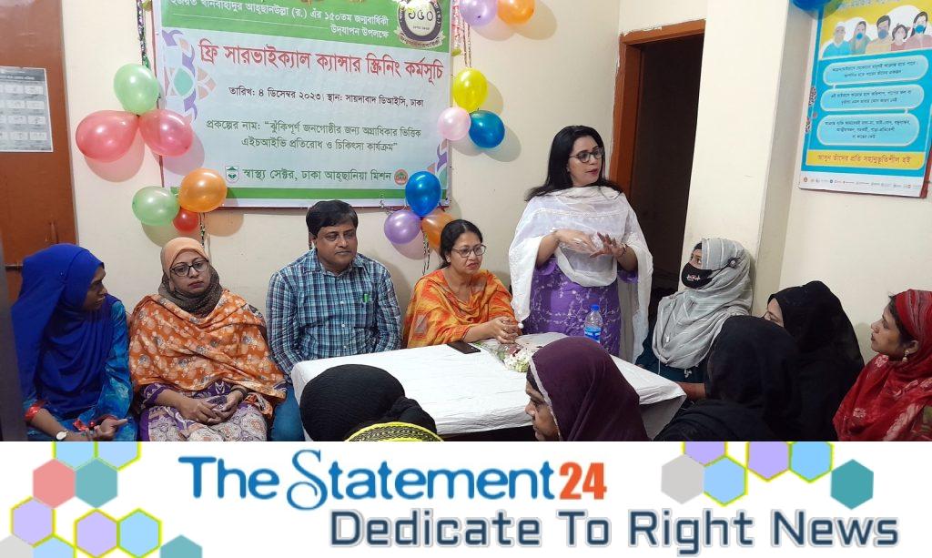 A free medical camp was held with the aim of cervical cancer screening in collaboration with the Urban Primary Health Care Project of Dhaka Ahsania Mission. A total of 40 sex workers received cervical cancer screening services from Syedabad DIC in Dhaka at that time.