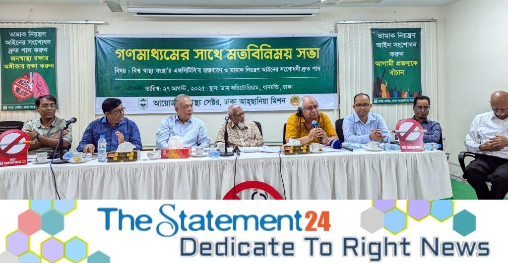 The demand was made on Wednesday (27 August) at a media briefing organized by Dhaka Ahsania Mission titled “Implementation of WHO FCTC and Urgent Passage of the Draft Amendment to the Tobacco Control Law.”