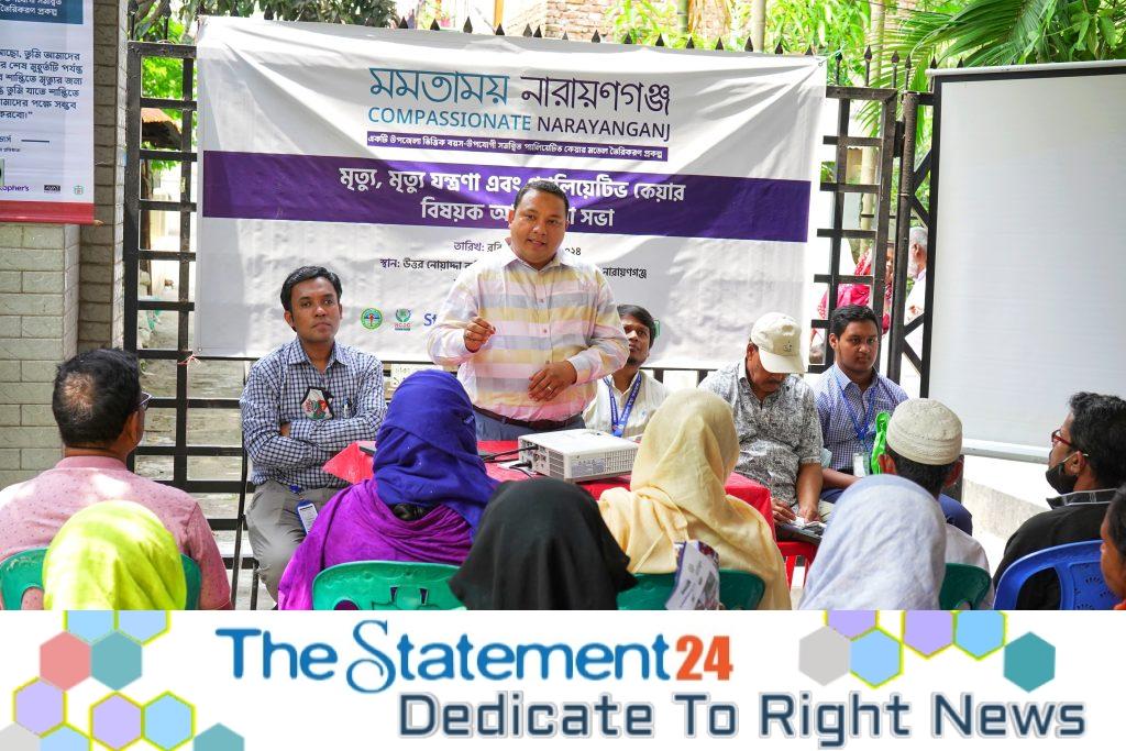 Discussions on death, dying pain, and palliative care were held by AYAT Education under the ‘Compassionate Narayanganj’ project. The discussion meeting was held on Sunday (March 24) at 11 am in the premises of North Noadda Community Clinic in Bandar Upazila of Narayanganj. Community Clinic Treasurer Haji Md. Tamiz Uddin presided over community health care provider Manzur Murshed was conducted the meeting and Upazila Social Service Officer Md. Faisal Kabir was the chief guest at the discussion meeting.