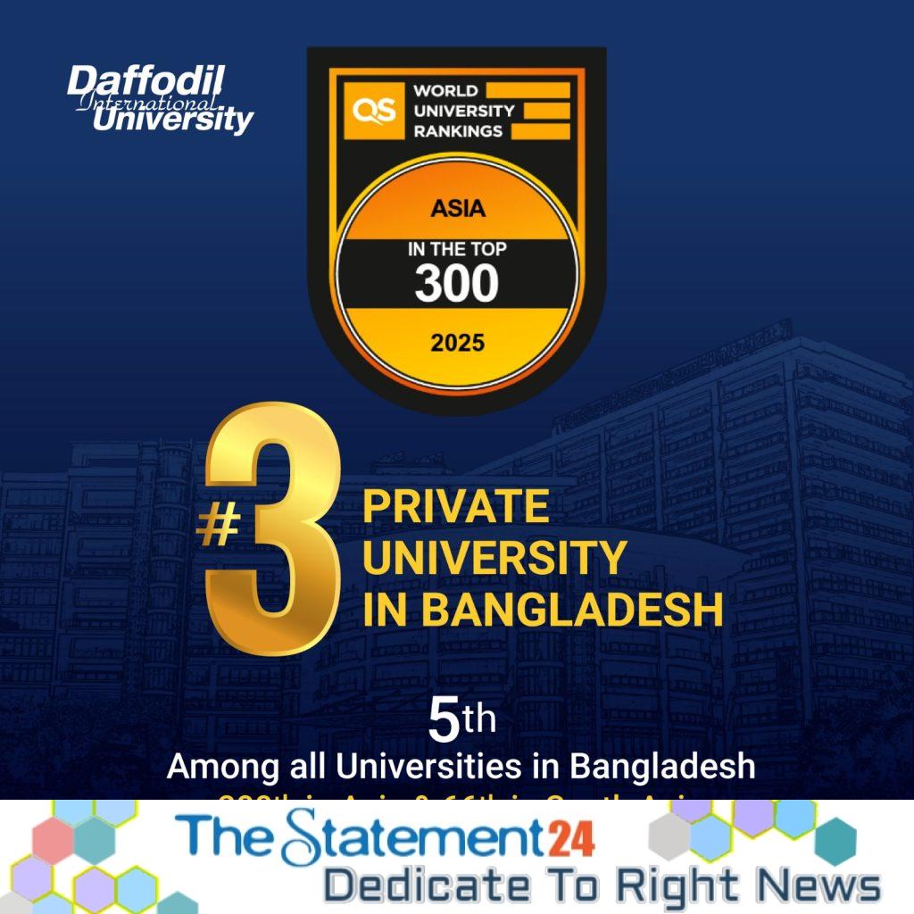 Earlier, DIU secured a position in the 901-920 band in the QS World Sustainability Rankings 2024 and the 1201-1400 band in the QS World University Rankings 2025. In addition, Daffodil International University has enviable achievements in THE World University Rankings, THE Impact Rankings, UI Greenmetric World University Rankings, SCIMAGO Institutions Ranking, and Scopus Indexed Research Publications this year.