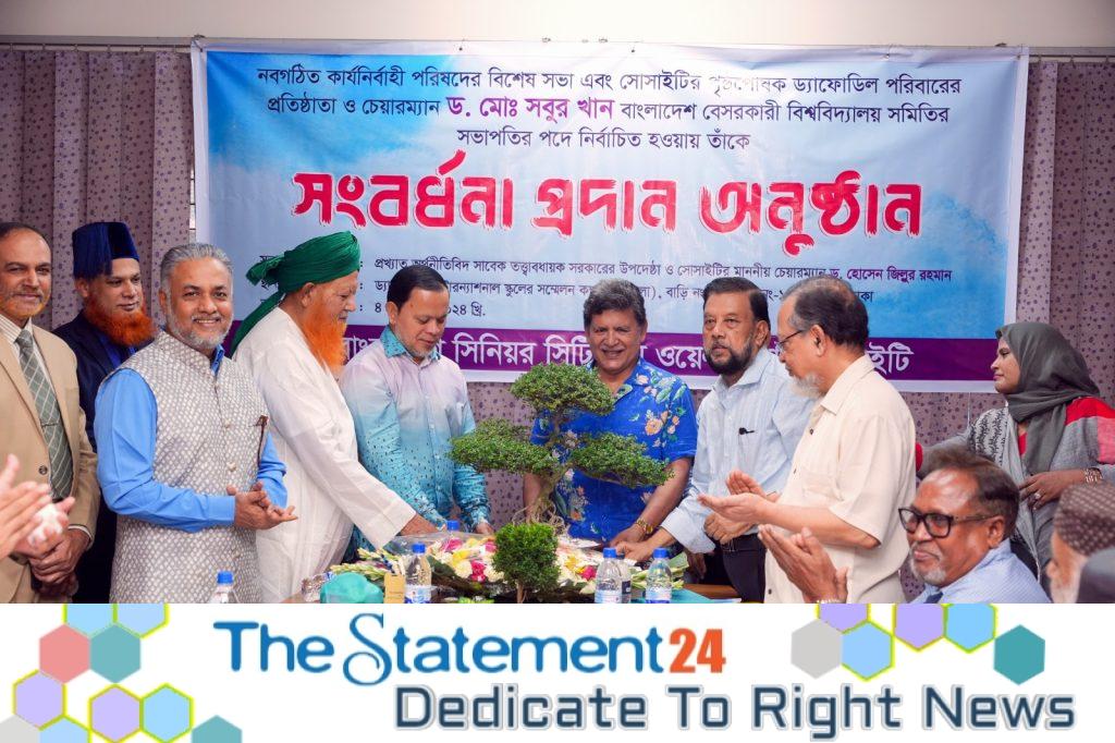 Dr. Md. Sabur Khan, Chairman of Board of Trustees of Daffodil International University and Daffodil Family and Founder Sponsor of Bangladesh Senior Citizen Welfare Society was accorded a grand reception on behalf of Bangladesh Senior Citizen Welfare Societyfor being elected as the president of Association of Private Universities of Bangladeshon 16 August 2024. The felicitation ceremony was organized today on September 04, 2024 by the society at Daffodil International School Auditorium at Sobhanbagh, Dhanmondi in the capital. The ceremony was presided over by renowned economist, former caretaker government advisor and newly elected chairman of Bangladesh Senior Citizen Welfare Society. Hossain Zillur Rahman. Dr. Mohammad Nuruzzaman, Chief Executive Officer of Daffodil Family andEngineer Md. FazlulHaque, Secretary General of Bangladesh Senior Citizen Welfare Society gave a welcome speech on the occasion.