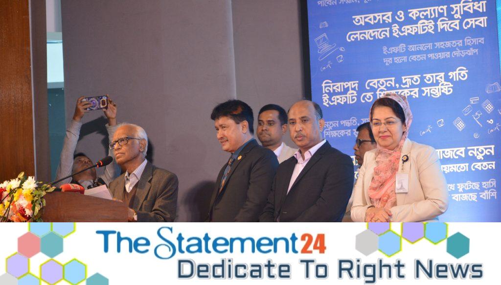 Education Advisor Professor Wahiduddin Mahmud stated that the long-standing harassment and inconvenience faced by MPO-enlisted teachers and employees of private educational institutions under the Directorate of Secondary and Higher Education have been resolved. This has been achieved through the introduction of the Electronic Fund Transfer (EFT) system, which directly transfers salaries, retirement, and welfare benefits to their bank accounts.