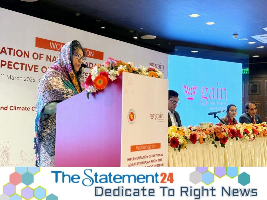 She made these remarks at a workshop titled “Implementing National Adaptation Plans from the Perspective of Food Systems and Nutrition” held at Hotel Intercontinental, Dhaka on Tuesday. The event, organized by MoEFCC with support from the Global Alliance for Improved Nutrition (GAIN), focused on the impact of climate change on food transformation.