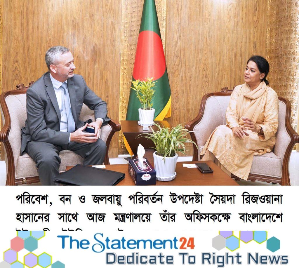 Environment Advisor said this while Michael Miller, the European Union Ambassador to Bangladesh, paid a courtesy call on her at her office in the Bangladesh Secretariat today. During the meeting, they discussed pressing environmental concerns, climate change mitigation, and ways to strengthen Bangladesh-EU cooperation on sustainable development initiatives.