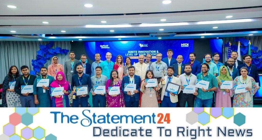 The Tazkera & Golam Mustafa Center for Teaching & Learning (TCTL) of the Human Resource Development Institute (HRDI) at Daffodil International University (DIU) proudly recognized the exemplary teaching practices of outstanding faculty members with the prestigious Excellence in Teaching Award 2024. The ceremony was held on June 30, 2024, at Daffodil International University, celebrated the remarkable achievements of educators who have made a significant impact on student learning and development. This year’s Excellence in Teaching Award recipients are:Mizanur Rahman – Assistant Professor, Department of Multimedia & Creative Technology and Md. Salman Sohel – Lecturer, Department of Development Studies of Daffodil International University. In addition DIU recognized 21 other promising teachers from various departments for their exceptional teaching methodologies, innovative approaches to education, and their ability to inspire and motivate students. These educators have demonstrated outstanding dedication to delivering high-quality education and fostering a supportive learning environment. This year a new category of award was also introduced titled “Hasna Ara & Aftabuddin Recognition Award” for the Best Female Undergraduate Student. The very first winner of this award is Nadiya Nusrat Koly from Department of Nutrition and Food Engineering.