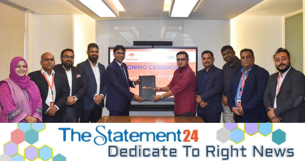 The agreement was recently signed at Guardian Life’s head office in Dhaka. Sheikh Rakibul Karim, FCA, Additional Managing Director and Acting Chief Executive Officer of Guardian Life, and Faiyaz Safir, Chief Operations Officer of WeGro Global, represented their respective organizations during the signing ceremony. Senior officials from both organizations were also present.