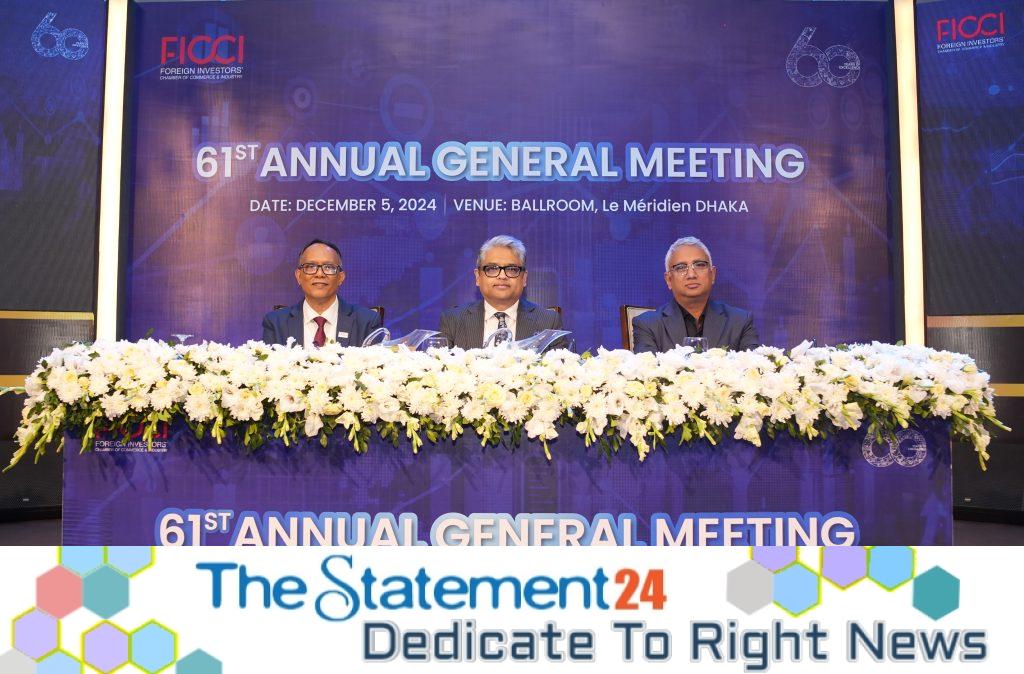 The 61st AGM concluded with a renewed sense of optimism and determination to strengthen the partnership between the government and foreign investors, further contributing to Bangladesh’s economic growth and development. The event was attended by FICCI Executive Director T.I.M. Nurul Kabir, along with the Board of Directors, CEOs, and other officials of member companies.