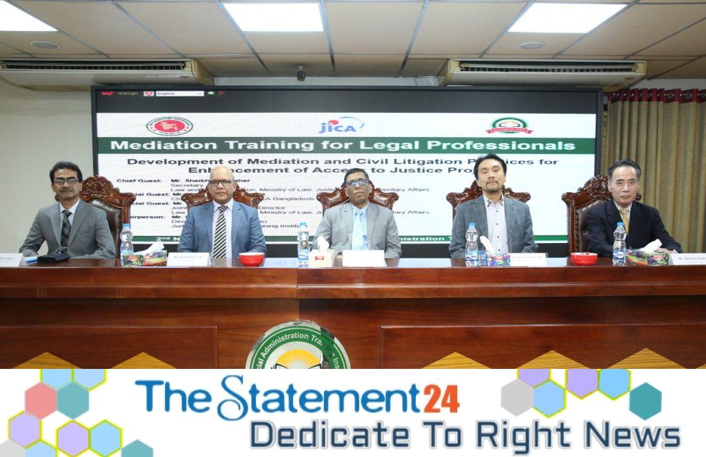 Japan International Cooperation Agency (JICA) in collaboration with Law and Justice Division (LJD) of the Ministry of the Law, Justice and Parliamentary Affairs and Judicial Administration Training Institute (JATI) organized a Mediation Training program for Legal Professionals, titled ‘Development of Mediation and Civil Litigation Practices for Enhancement of Access to Justice Project (A2J Project)’. The training held from November 1 to November 2, 2024, at JATI, Dhaka.