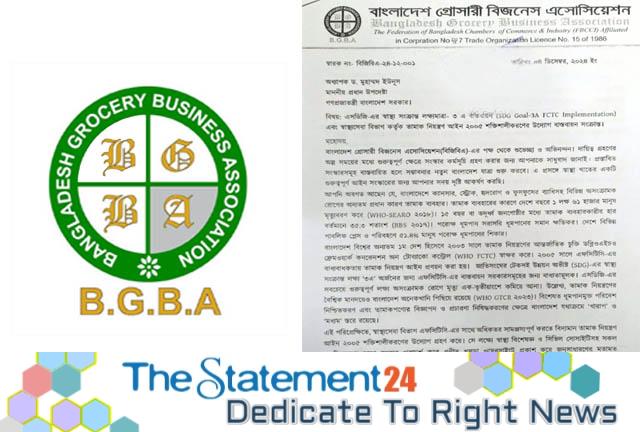 Bangladesh Grocery Business Association (BGBA) has sent a letter to the Chief Adviser, demanding the swift passage of the proposed amendments to the Tobacco Control Act to strengthen it further and prevent premature deaths caused of tobacco.