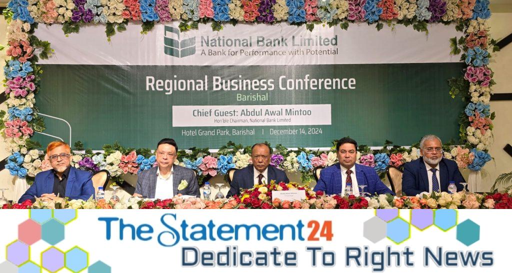 National Bank hosted its Regional Business Conference for Barishal on Saturday, December 14, 2024, at Hotel Grand Park in Barisal. The event was graced by Mr. Abdul Awal Mintoo, Chairman of National Bank, as the Chief Guest. The conference was attended by Mr. Moazzam Hossain, Vice Chairman & Sponsor Director; Mr. Md. Abdus Satter Sarkar, Independent Director & Chairman of the Audit Committee and Mr. Md. Zulkar Nayn, Independent Director. Also present were Mr. Md. Touhidul Alam Khan, Managing Director & CEO; Region Managers of Khulna and Shariatpur, along with Branch Managers, Operations Managers, and Sub-branch Managers from the Khulna and Shariatpur Region.