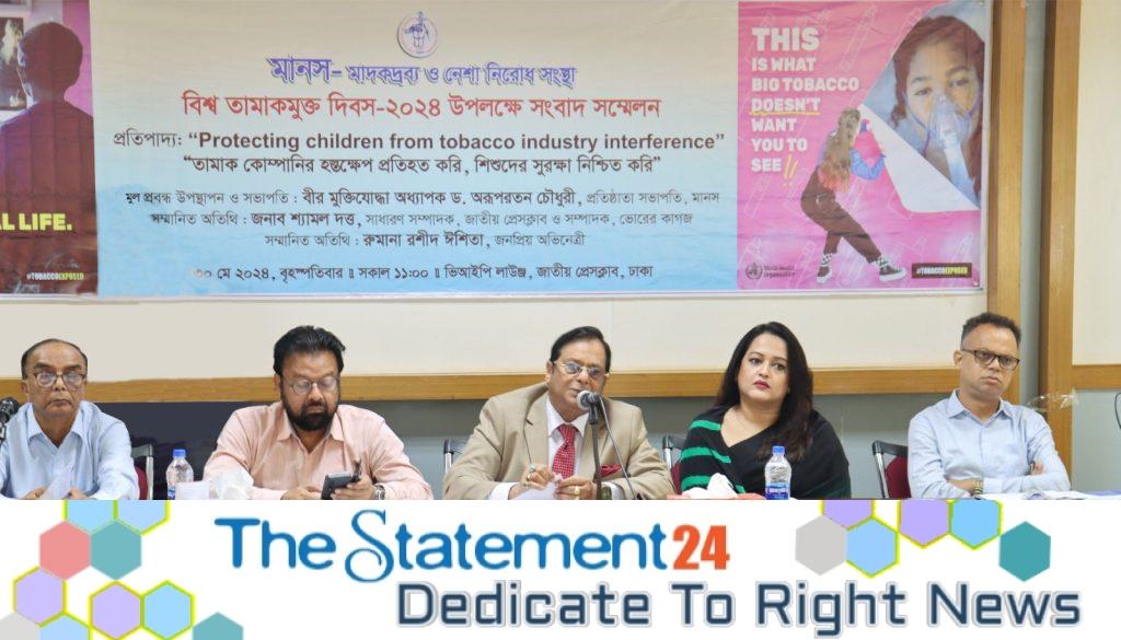 Ad. Syed Mahbubul Alam emphasized that smoking is portrayed in plays, movies, and web series as an essential activity, a narrative driven by tobacco companies to trap children and teenagers. He stressed the need for OTT policies in the country to address smoking cessation and protect public health. Alam also pointed out the proliferation of ‘smoking areas’ in restaurants, which disrupts the family-friendly environment and aids in the promotion of tobacco products. Actress Rumana Rashid Ishita expressed concern for children, stating that today’s youth are the future. She urged societal idols to be more aware, as children learn more by observing than reading. She noted that harmful products like cigarettes and vapes are easily accessible to all ages due to information technology, underscoring the importance of raising awareness and enforcing the law. Shyamal Dutta reflected on the past when tobacco companies-controlled advertising. Despite that, Bhorer Kagoj refused to print smoking ads, adhering to the principle that promoting harmful products does not benefit humanity. He criticized the tobacco industry’s efforts to increase consumption in developing countries like Bangladesh and called out the lack of enforcement of laws prohibiting the sale of tobacco to minors. World No Tobacco Day is observed annually on May 31 in various countries, including Bangladesh, to promote anti-tobacco awareness. This year’s theme is “Protecting Children from Tobacco Industry Interference.” MANAS has organized a discussion meeting at Udayan Uchcha Madhyamik Bidyalaya on Friday, May 31, 2024, at 3:00 PM to celebrate the day and emphasize the theme.