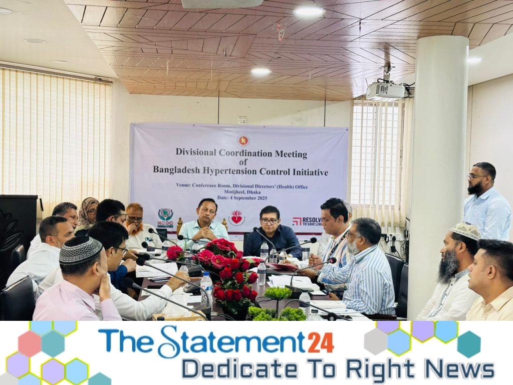 The information was shared at a divisional coordination meeting held today (Thursday) at the office of the Divisional Director (Health), Dhaka. The meeting discussed the progress and future plans of the Bangladesh Hypertension Control Initiative, implemented under the Non-Communicable Disease Control (NCDC) Program of the Directorate General of Health Services (DGHS), with technical support from the National Heart Foundation of Bangladesh and Resolve to Save Lives.