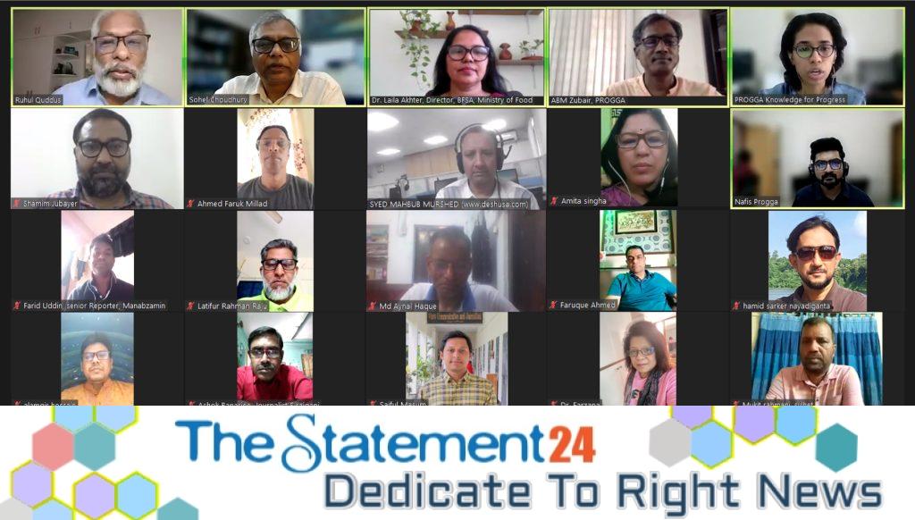 Dr. Laila Akhter, Director of Bangladesh Food Safety Authority (BFSA), was also present at the webinar as one of the discussants. PROGGA’s Coordinator Sadia Galiba Prova delivered the keynote presentation and PROGGA’s Executive Director ABM Zubair chaired the webinar. People of different professions from different regions of the country participated in the webinar.