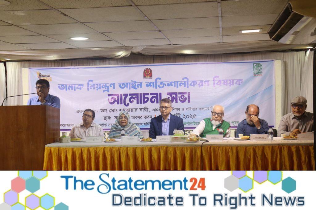On 11 August 2025, a discussion meeting was held at the Retirement Building, jointly organized by the Development Organisation of the Rural Poor-DORP and the Bangladesh Retired Government Employees Welfare Association. The meeting called for the quick passage of the proposed amendments to the Tobacco Control Act to protect public health.