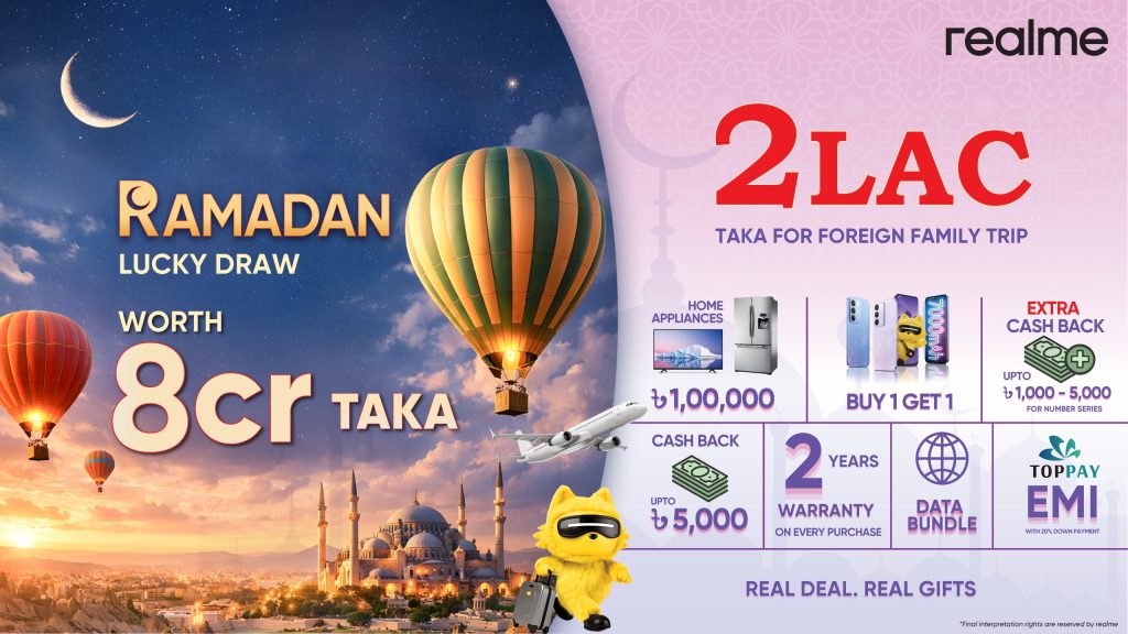 realme, the youth-favorite smartphone brand, has unveiled its biggest-ever seasonal campaign this Ramadan, bringing exciting rewards and guaranteed benefits to customers across Bangladesh. With a total of BDT 8 crore worth of gifts, the brand aims to celebrate the spirit of giving and make this Eid even more joyful for new buyers.