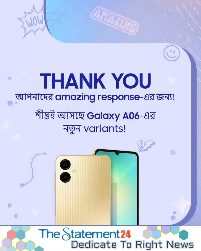 Following the amazing response from customers, Samsung has announced to refill the stock of Galaxy A06 with new variants (4GB + 128GB and 6GB + 128GB) by mid-May.