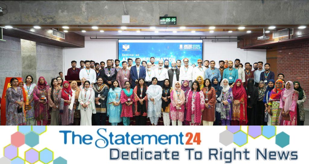 The Institutional Quality Assurance Cell (IQAC) of United International University (UIU) organized a seminar titled “AI Transformation: Enhancing Productivity, Employability, and Institutional Efficiency” yesterday at UIU Campus, United City, Madani Avenue, Dhaka. The seminar was designed for all faculty members and administrative personnel.