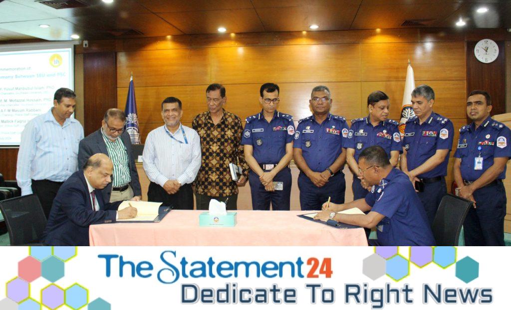 Southeast University (SEU) and Police Staff College Bangladesh signed a Memorandum of Understanding (MoU) on July 1, 2024, at the ICC, Police Staff College Bangladesh, marking the beginning of a collaborative effort to enhance mutual academic and research cooperation. The MoU was signed by Dr. Mallick Faqrul Islam, bpm, ppm, Rector, Police Staff College Bangladesh, and Prof. Dr. Yusuf Mahbubul Islam, vice chancellor, Southeast University. Prof. Dr. M. Mofazzal Hossain, Pro Vice Chancellor, SEU; Dr. A. F. Masum Rabbani, SDS (Training), Police Staff College; Maj. Gen. Kazi Fakhruddin Ahmed (Retd), Registrar, SEU; Air Vice Marshal M. Abul Bashar (Retd), SEU, Add’l Registrar; and Mr. Mohammad Tarik Al Jalil, SEU BoT Secretary were present in the ceremony.