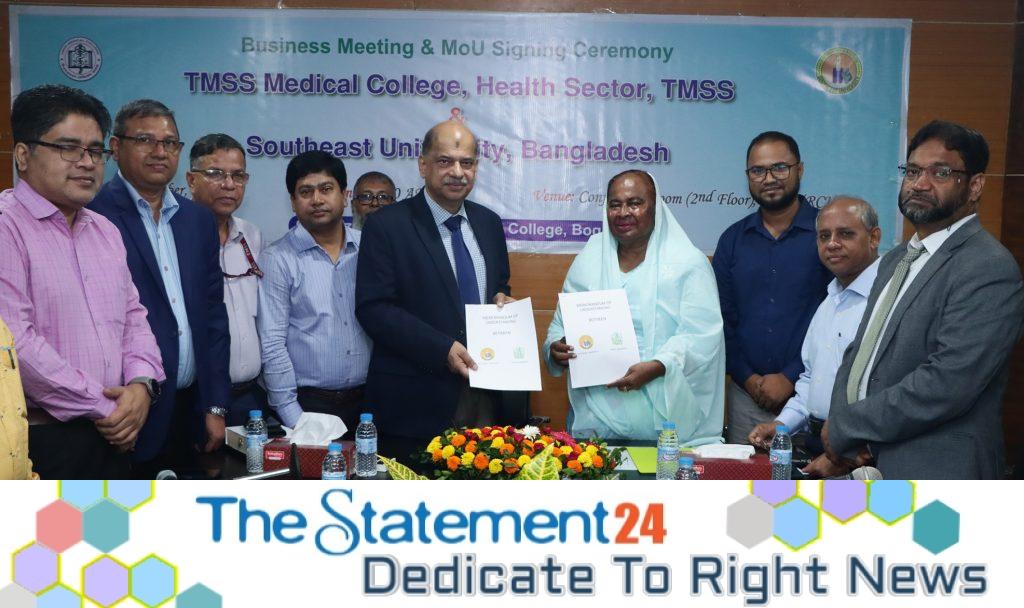 Southeast University (SEU) signs a Memorandum of Understanding (MoU) with TMSS Grand Health Sector to foster collaboration in research, education, and healthcare. The MoU was signed on October 5, 2024, during a business meeting and MoU signing ceremony held at the Conference Room of TMSS Bogura.