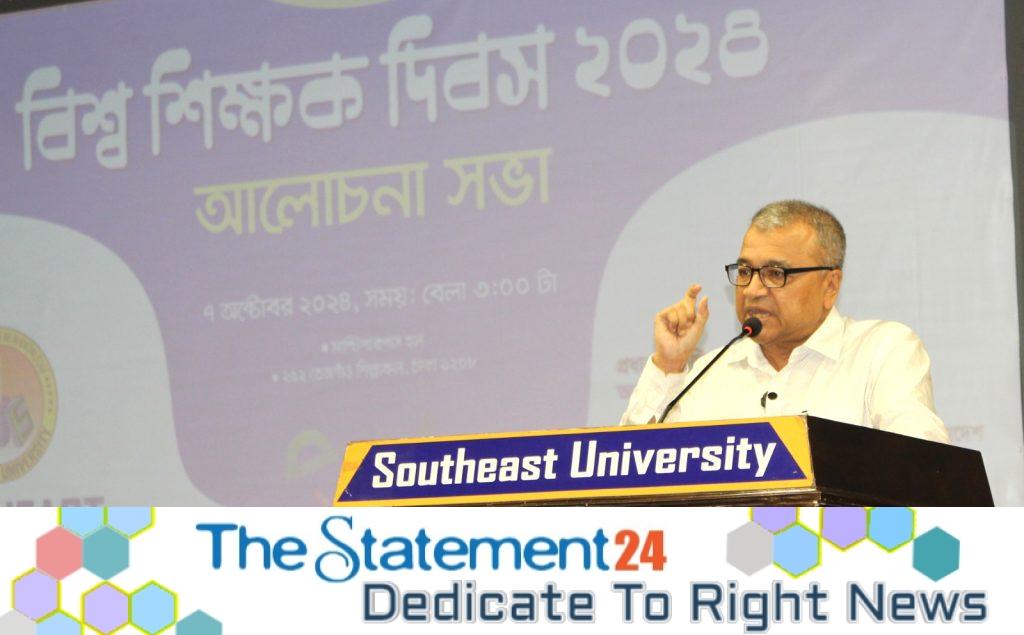 In celebration of World Teachers’ Day 2024, Southeast University (SEU) organized a discussion event on Monday, 7 October 2024, at the SEU Multipurpose Hall. Renowned writer, scholar, jurist, and intellectual Professor Dr. Salimullah Khan attended the event as the Chief Guest, while SEU Vice Chancellor, Professor Dr. Yusuf Mahbubul Islam, chaired the program.