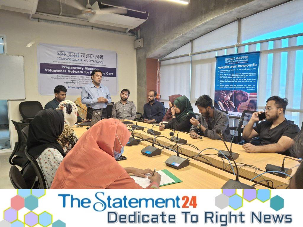 A preparatory meeting for the Volunteer Network for Palliative Care was successfully held today at the NCC Conference Room, Narayanganj. Organized by AYAT Education with the support of Narayanganj City Corporation (NCC), the meeting is part of the ongoing efforts under the Compassionate Narayanganj Project to build a sustainable palliative care ecosystem in the city.