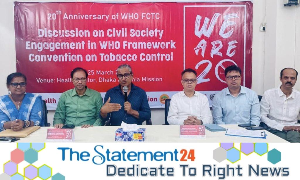 According to the World Health Organization, tobacco use is the leading cause of preventable death and disease globally, stated the speakers. Today, on Tuesday, March 25, at 3:00 PM, during a discussion meeting titled “Role of Civil Society in the Implementation of WHO FCTC” organized by Dhaka Ahsania Mission at the health sector office in Shyamoli, the speakers further mentioned, “Tobacco poses a significant barrier to public health protection and achieving SDG targets. Therefore, the proper implementation of FCTC and the participation of civil society are crucial to achieving the SDGs by 2030. To ensure the effective implementation of FCTC, it is essential to amend and enforce the tobacco control law strictly.”